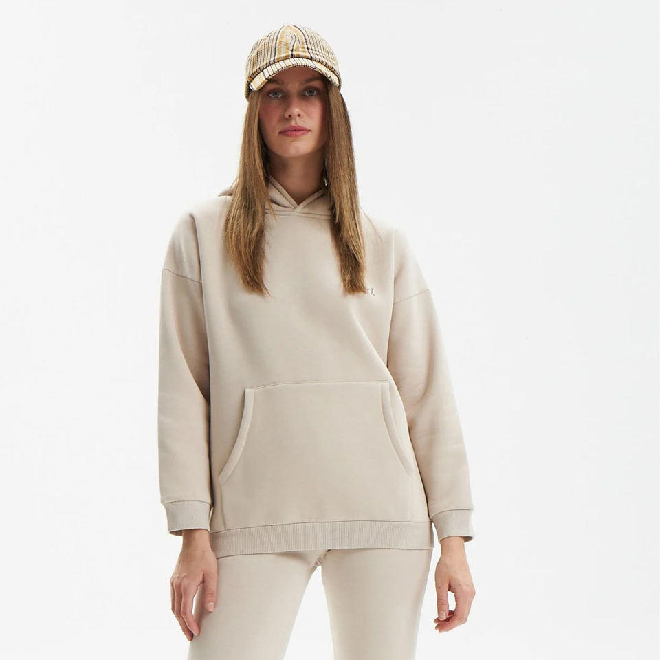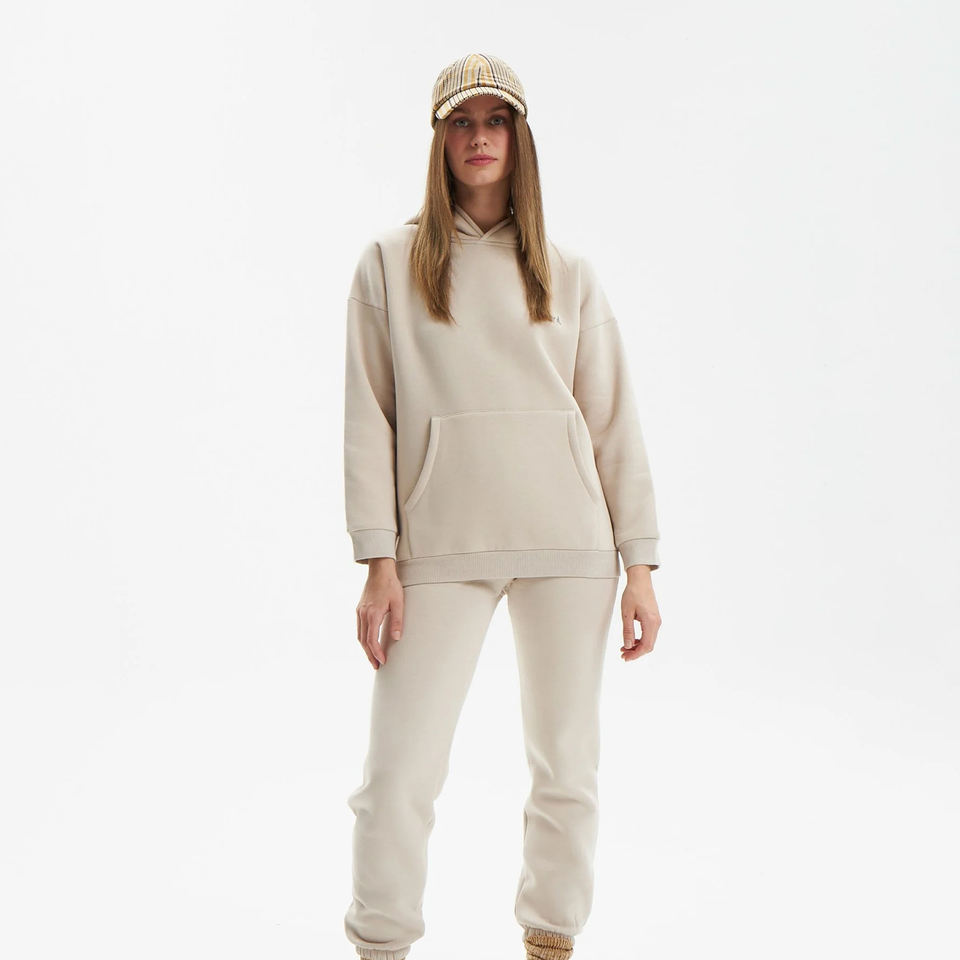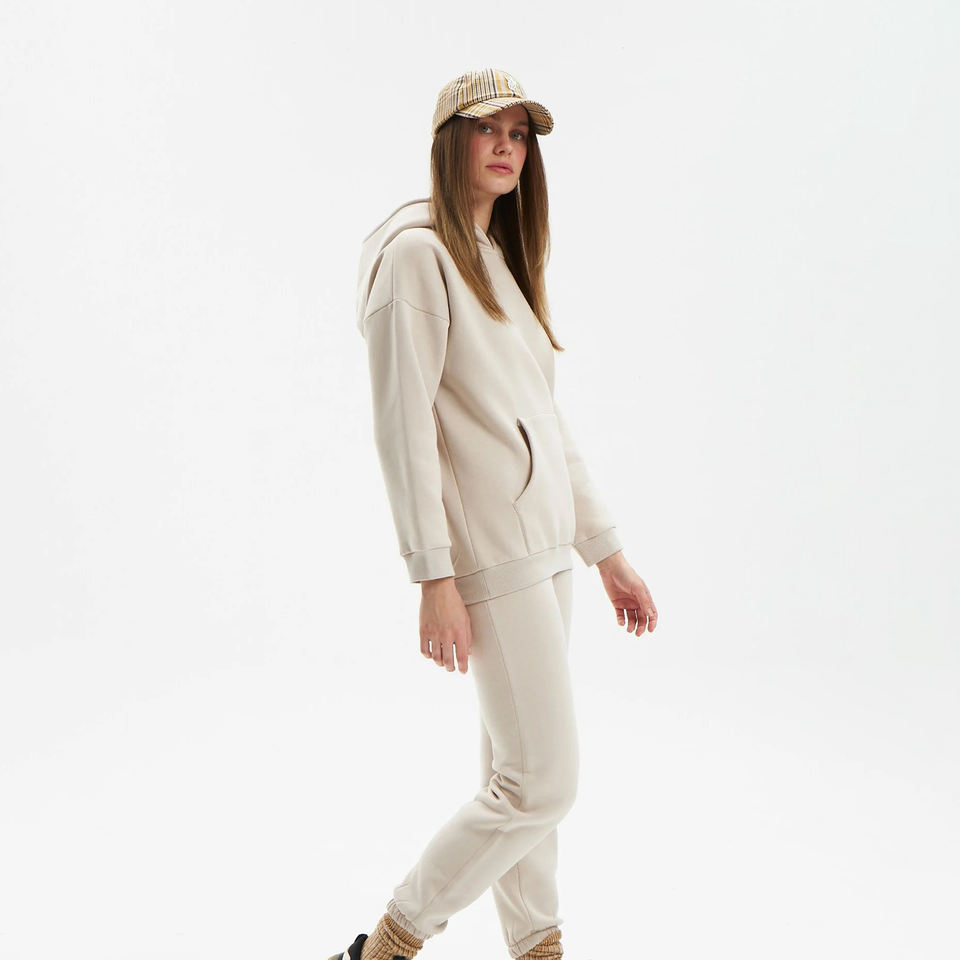 Women's Custom Logo Printed 100% Cotton Winter Tracksuit Breathable Solid Pattern Hooded Set for Adults