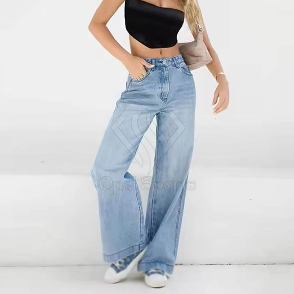 กางเกงยีนส์ทรงกระบอกขาบานสำหรับผู้หญิง พิมพ์โลโก้ตามสั่ง ระบายอากาศได้ดี สวมใส่สบาย ทรงขาบานแบบลำลอง ด้านหน้าเรียบ เหมาะสำหรับฤดูหนาว