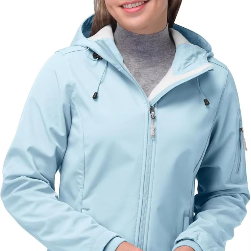 แจ็กเก็ตซอฟต์เชลล์สำหรับผู้หญิงผ้านุ่มพิมพ์ลายกันน้ำระบายอากาศได้ดีโลโก้ออกแบบได้ตามต้องการ