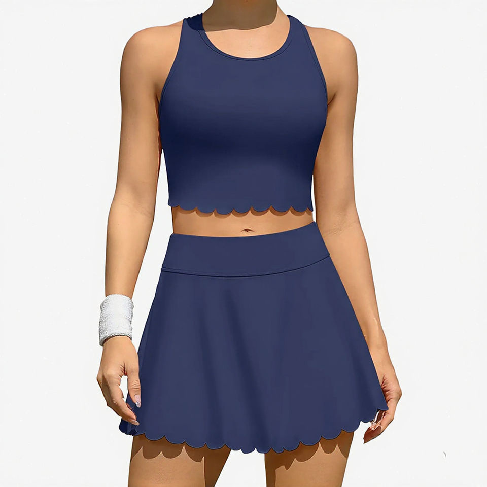 ชุดกระโปรงเทนนิสสองชิ้นแบบสั่งตัดสำหรับผู้หญิง - กระโปรงออกกำลังกายเอวสูงสำหรับฟิตเนสและโยคะ พร้อมสปอร์ตบรา ระบายอากาศได้ดี ไร้รอยต่อ แห้งเร็ว