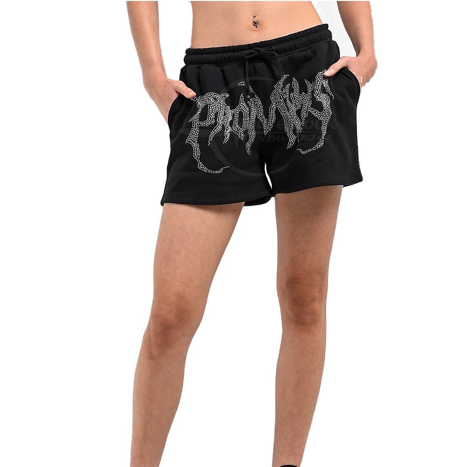 ชื่อสินค้า:กางเกงขาสั้นผ้าฟลีซประดับพลอยเทียมสำหรับผู้หญิง