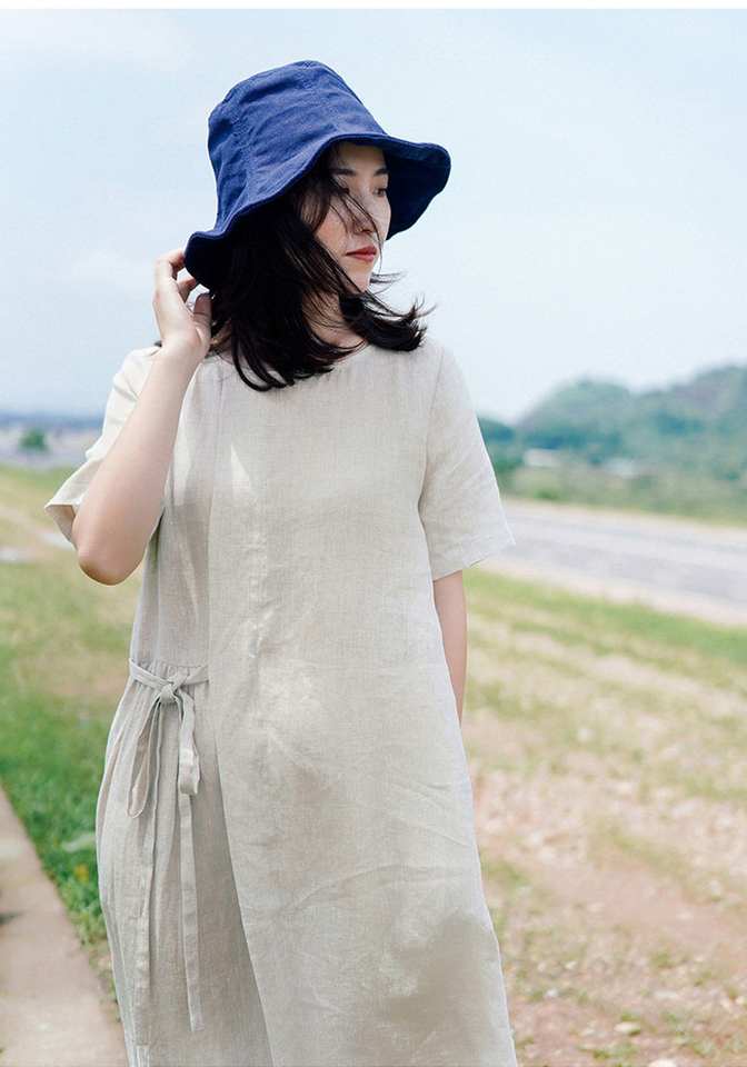 ชื่อผลิตภัณฑ์:ชุดเดรสผ้าลินินแขนสั้น