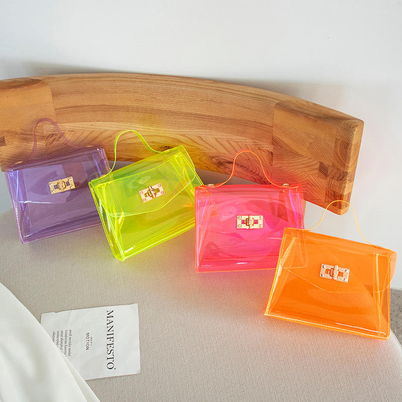 กระเป๋าถือสะพายไหล่ PVC แบบใสสำหรับผู้หญิง กระเป๋าถือแบบมีซิปใส กระเป๋าสะพายข้างใส่โทรศัพท์ กระเป๋าถือยาง ป้าย PVC แบบกำหนดเองได้