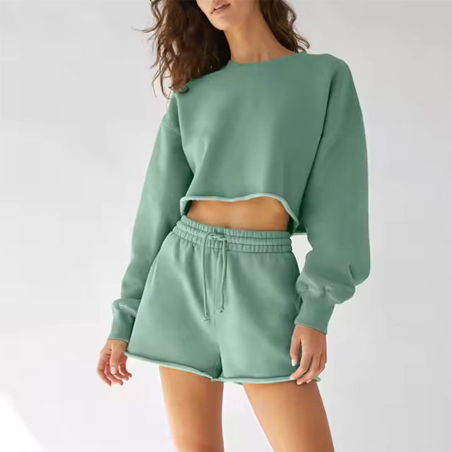 เสื้อกันหนาวสำหรับผู้หญิงชุด2ชิ้นสำหรับผู้หญิงเสื้อกันหนาวแห้งเร็วและสั้นชุดเสื้อผ้าลำลองขนาดพลัสไซส์ออกแบบได้ตามที่ต้องการ