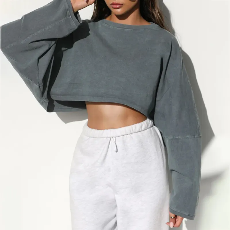 เสื้อสวมหัวตัวสั้นของผู้หญิงเสื้อ100% ฮู้ดซักแขนยาวผ้าฝ้ายสำหรับฤดูใบไม้ร่วงเสื้อผ้าแนวสตรีทแวร์ระบายอากาศด้านหน้าฤดูใบไม้ร่วง