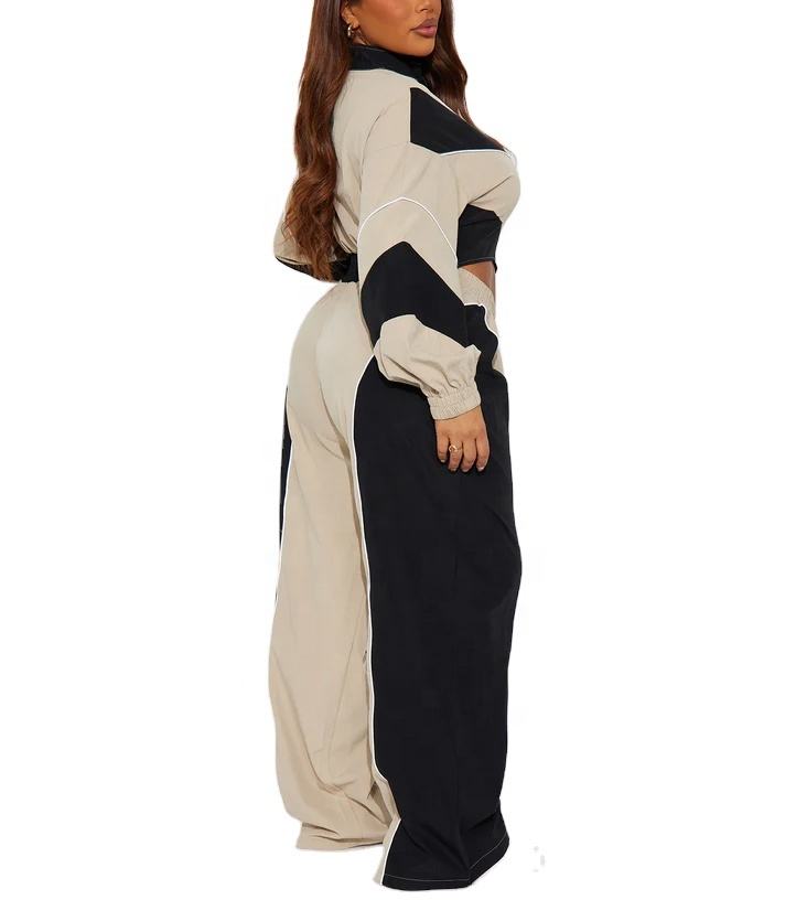 ชุดวอร์มกันลมผ้าโพลีเอสเตอร์แบบสั่งทำสำหรับผู้หญิง ชุดกีฬาความยาวระดับเข่า ดีไซน์สีตัดกัน สำหรับฤดูร้อน