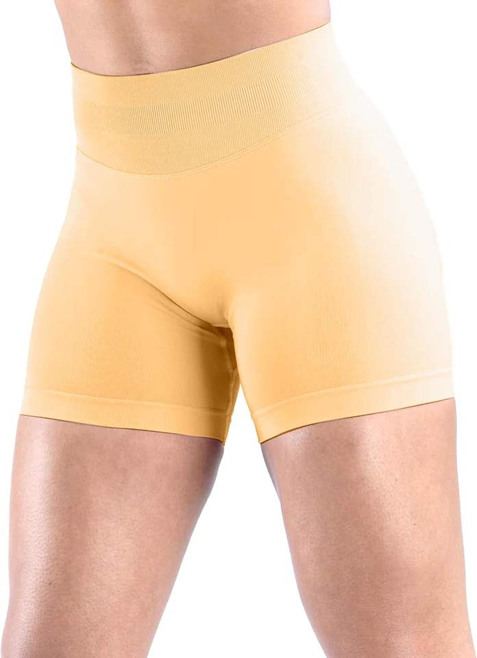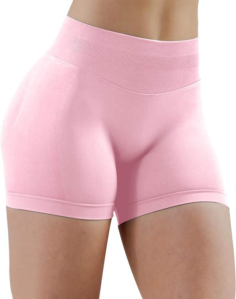 ชุดกางเกงเลกกิ้งขาสั้นสีพื้นสำหรับผู้หญิงชุดเล่นโยคะสไตล์นักปั่นจักรยานเอวยางยืดและกระเป๋าข้าง
