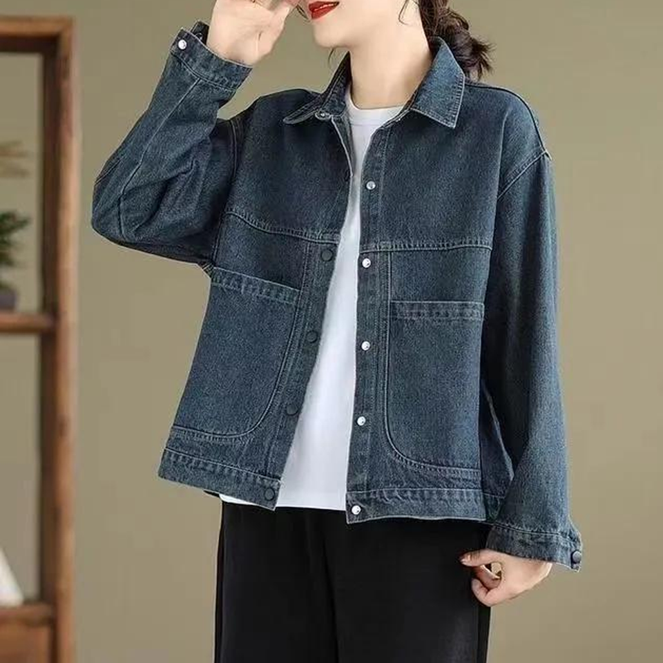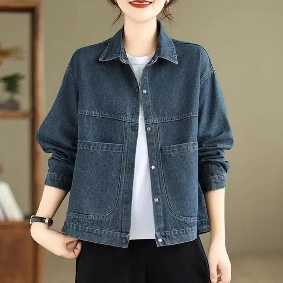 แจ็คเก็ตยีนส์ผ้าฝ้ายสีทึบ