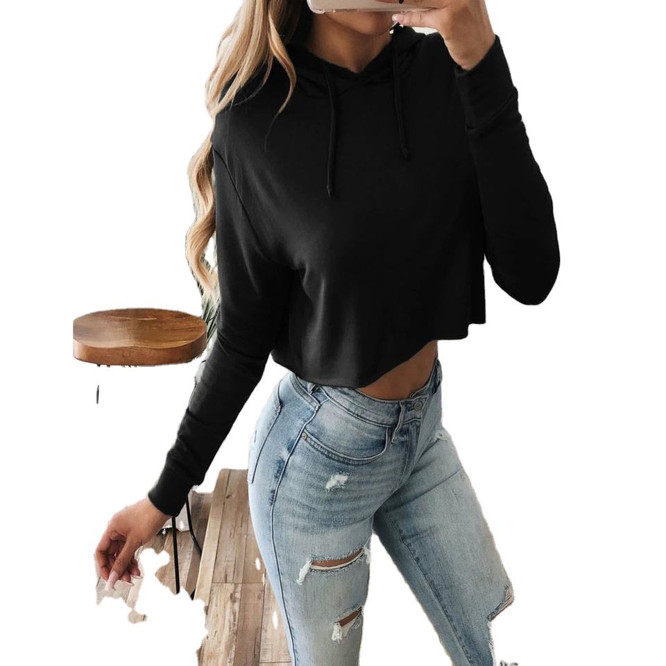 เสื้อฮู้ดสวมหัวผ้าฝ้ายเทอร์รี่ปรับแต่งได้สำหรับผู้หญิงเสื้อครอปใส่สบายสไตล์ออกกำลังกายไม่มีเชือกถักทันสมัยพิมพ์ลายลูกไม้