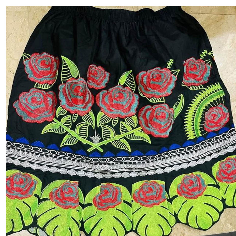 กระโปรงผ้าฝ้ายปักลายดอกไม้คุณภาพดีสำหรับผู้หญิง ดีไซน์ฮาวายแบบล่าสุดจากกัวม์และไมโครนีเซีย ประดับเลื่อมสำหรับฤดูร้อน