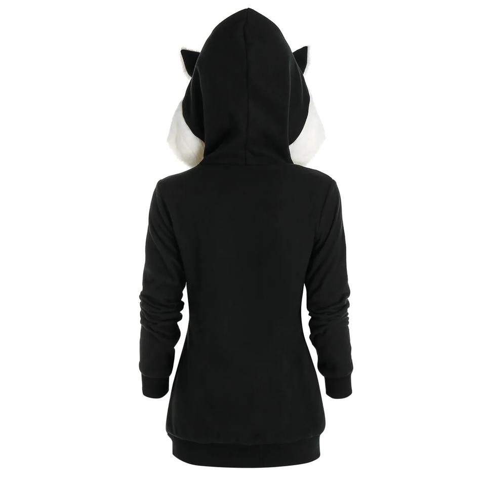 เสื้อฮู้ดหูแมวแบบหนาสำหรับผู้หญิงเสื้อฮู้ดแขนยาวมีซิปสำหรับฤดูใบไม้ร่วงและฤดูหนาว