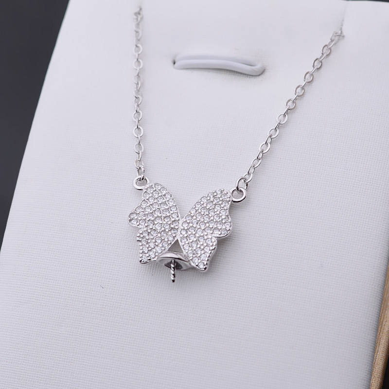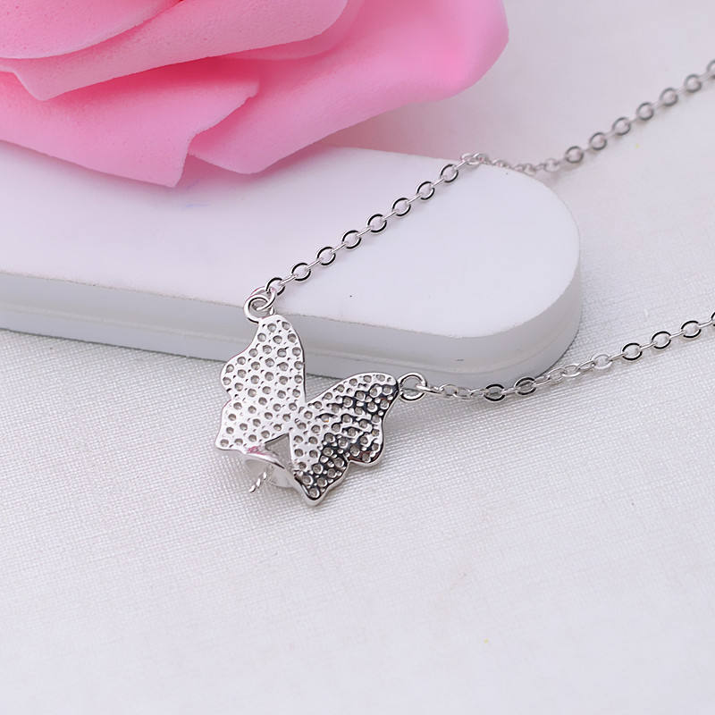 สร้อยคอจี้เงินแท้ S925 ประดับเพชรซิคอนรูปผีเสื้อและมุก ดีไซน์ทันสมัยสำหรับผู้หญิง