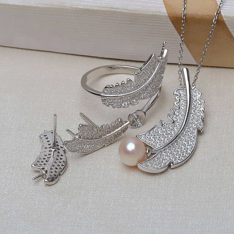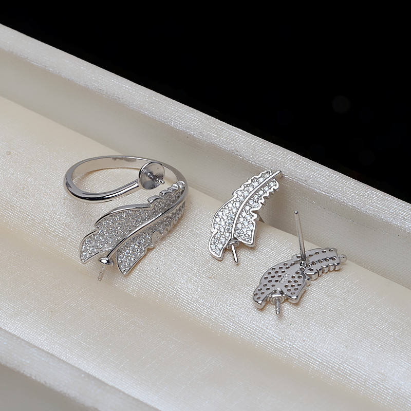 ชุดอุปกรณ์ทำเครื่องประดับ DIY สำหรับผู้หญิง เงินแท้ S925 จี้รูปขนนก ต่างหู แหวน ขนาด 5-6-7 ฐานเปล่าสำหรับติดมุก 3259 เครื่องประดับแฟชั่น สร้อยคอ