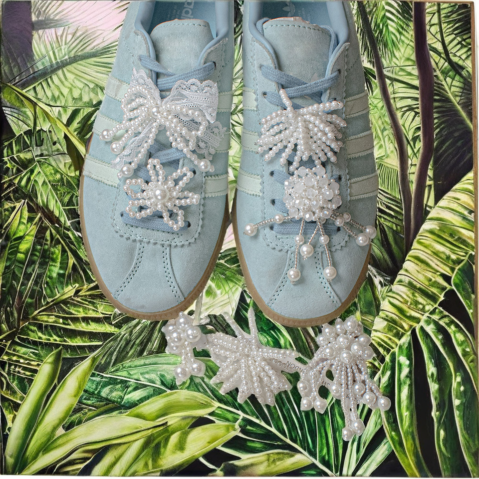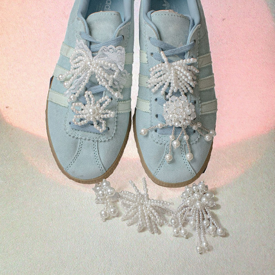 รองเท้าผ้าใบผู้หญิงรุ่น DQSJ 0216 แบบมัลติฟังก์ชั่น ประดับลูกไม้ โบว์น่ารัก ไข่มุก ตกแต่งด้วยจี้รองเท้า PVC แบบกำหนดเอง พร้อมอุปกรณ์ตกแต่งลายดอกไม้