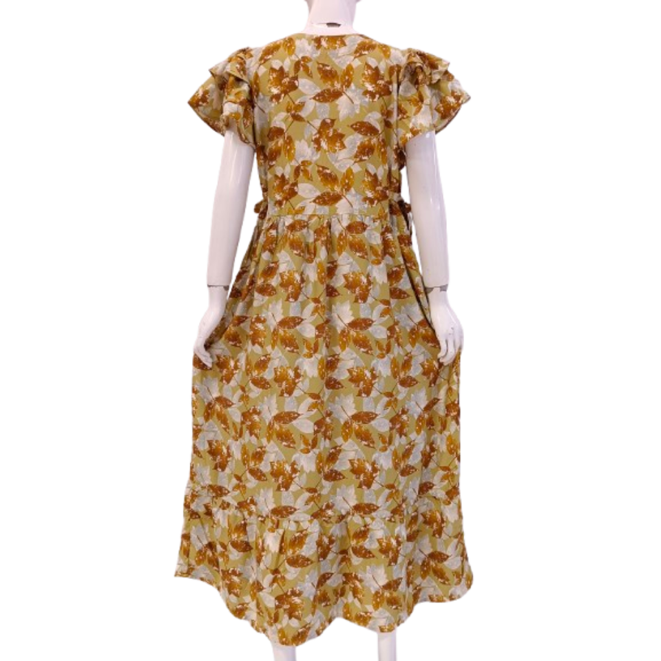 ชุดเดรสยาวคลุมเข่าสำหรับออกนอกบ้านแบบลำลองในชีวิตประจำวันของผู้หญิงพร้อมแขนระบายที่สวยงามโดย chrysanta วัสดุเรยอน100% นุ่มและเรียบเนียน