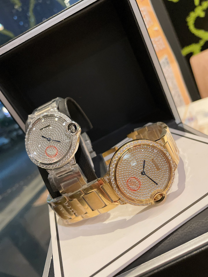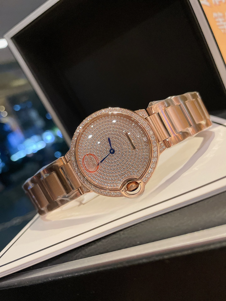 นาฬิกาข้อมือผู้หญิงหรูหราประดับเพชรเต็มเรือน ดีไซน์ทรงกลม ตัวเรือนคริสตัลทั้งเรือน สายโลหะสีเงิน สง่างาม เหมาะสำหรับใส่ในชีวิตประจำวันและโอกาสพิเศษ