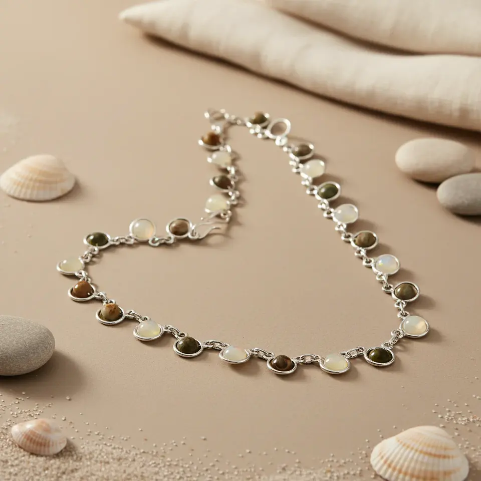 สร้อยคอสำหรับผู้หญิง สไตล์โบฮีเมียน ประดับพลอย ควอตซ์ มุก อาเกต เทอร์ควอยซ์ ปะการัง และเปลือกหอย
