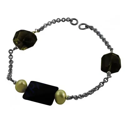 สร้อยข้อมือควอตซ์สโมคกี้และโซ่เงินสำหรับผู้หญิง สไตล์คลาสสิก ประดับด้วยโอปอลและไพลิน พร้อมชุบโรเดียม