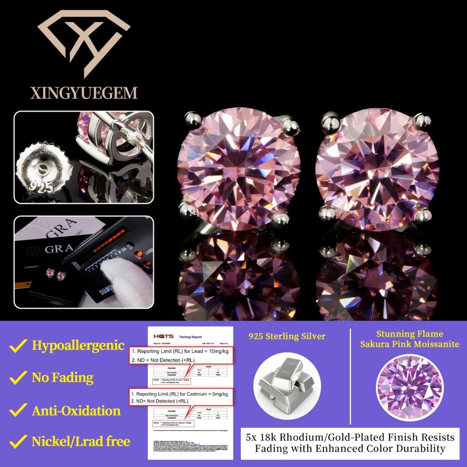 Product Name:Sakura Pink Moissanite Stud Earrings