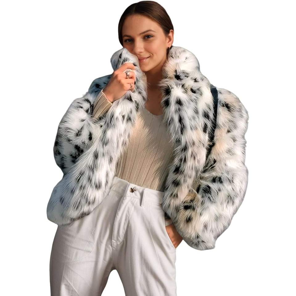 เสื้อแจ็กเก็ตตัวใหญ่สุดเซ็กซี่สำหรับผู้หญิงเสื้อคลุมขนสัตว์เทียมมีปกเสื้อปาร์เกอะสำหรับไนท์คลับตอนเย็น