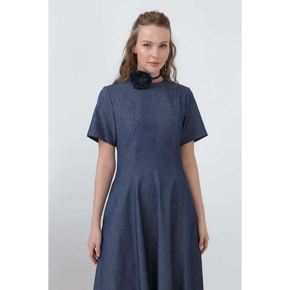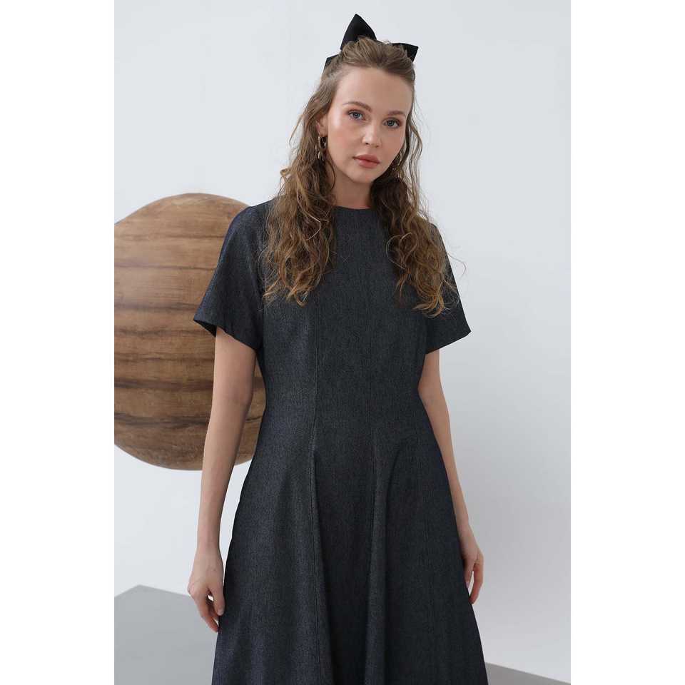 เดรสยีนส์ผู้หญิงสีกรมท่า ทรงเอไลน์ เนื้อผ้าระบายอากาศดี ดีไซน์เรียบง่าย