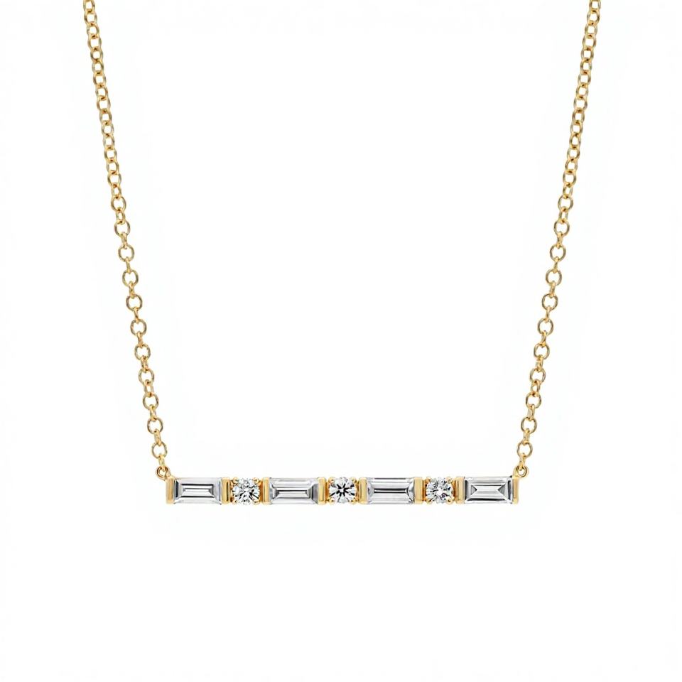 Women's Diamond Bar Necklace Baguette Lab Grown Diamonds 14K Yellow Gold Trendy Rhodium Plated Minimalist Fine Necklace