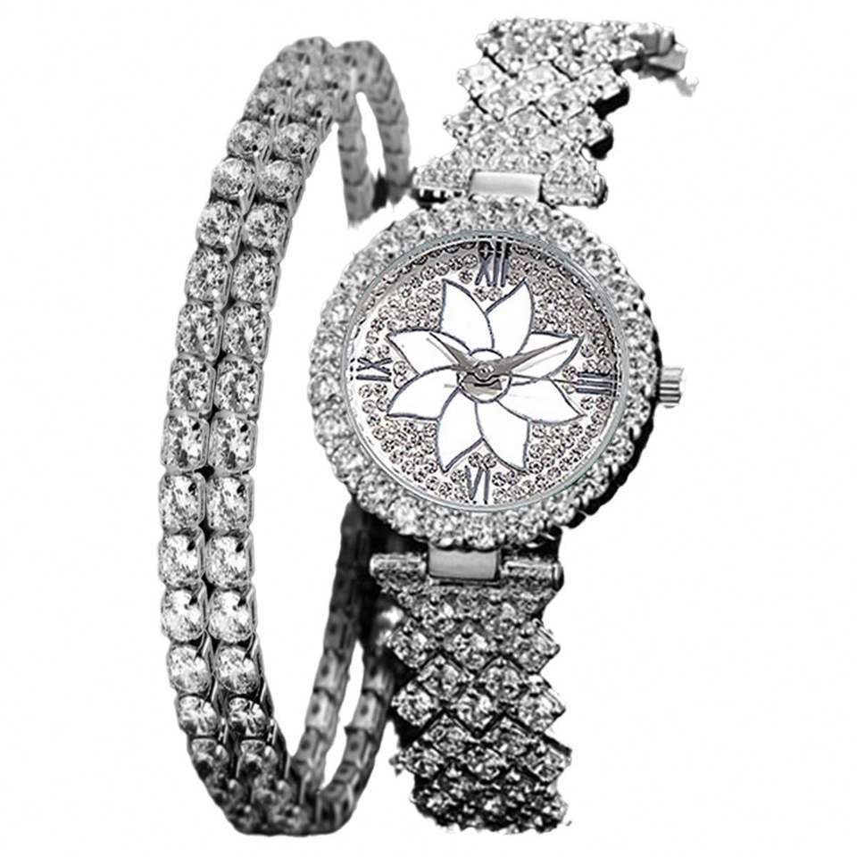 นาฬิกาควอตซ์หน้าปัดเพชรคละขนาดสำหรับผู้หญิงสายสแตนเลสสร้อยข้อมือรูปดาวแฟชั่นสำหรับเป็นของขวัญ