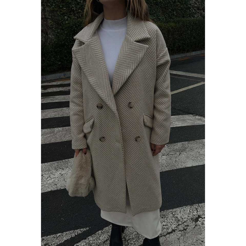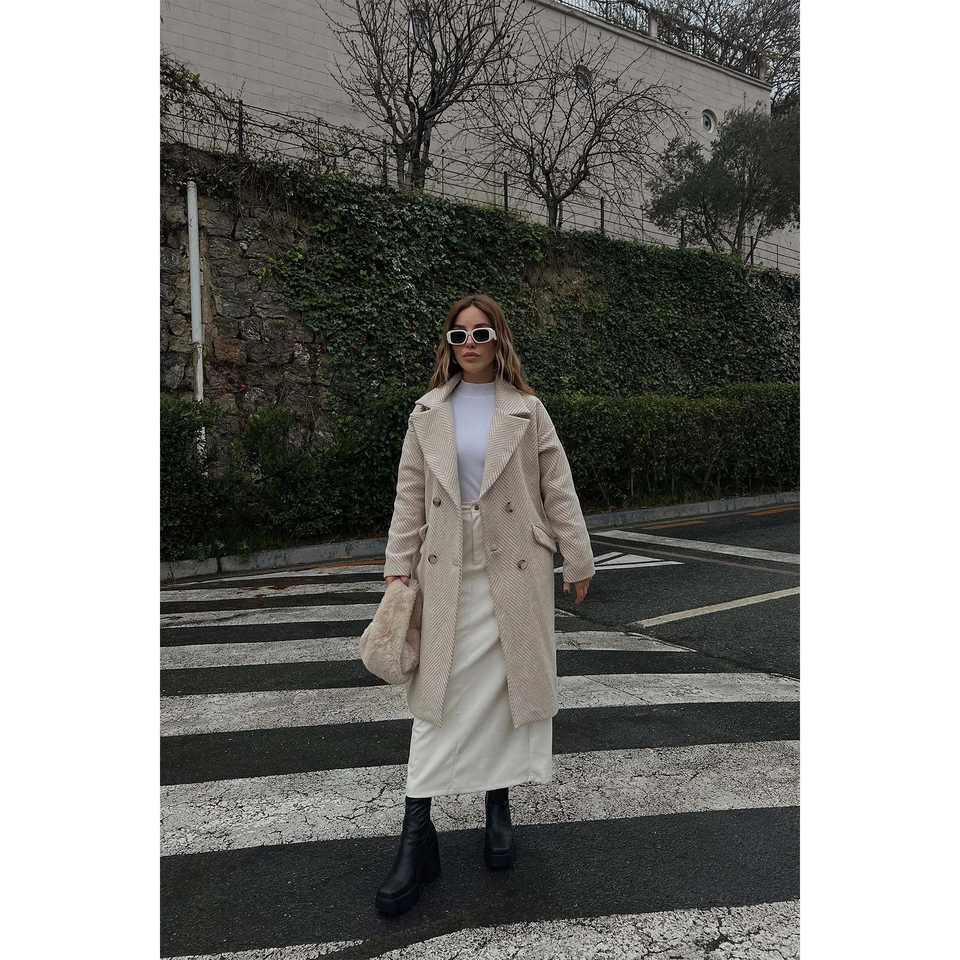 เสื้อโค้ทผู้หญิงแบบกระดุมสองแถว ลายครีม คอสูง ไซส์ XS ระบายอากาศได้ดี เหมาะสำหรับฤดูใบไม้ร่วง