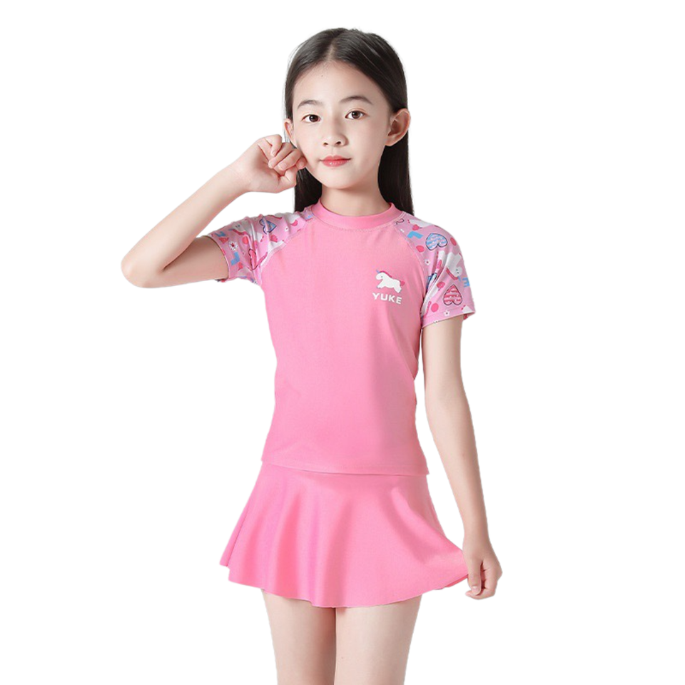 เซ็ตกระโปรงว่ายน้ำสองชั้นสีชมพูสีม่วงสำหรับผู้หญิงเซต2ชิ้นผ้าไนลอน-สแปนเด็กซ์ยืดหยุ่นใส่สบาย