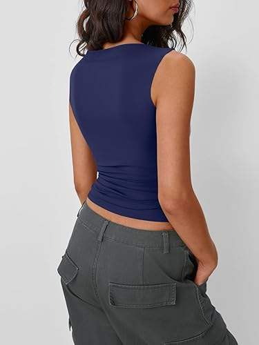 เสื้อกล้ามสายเดี่ยวแบบมีซับในสองชั้นสำหรับผู้หญิง สายปรับได้ ไม่มีแขน