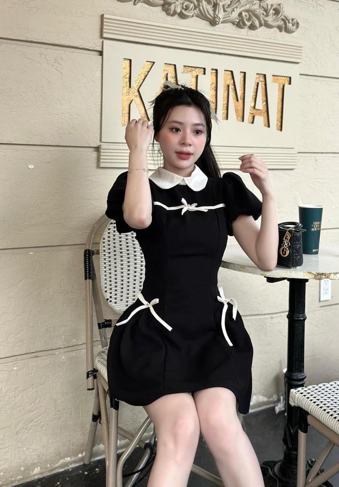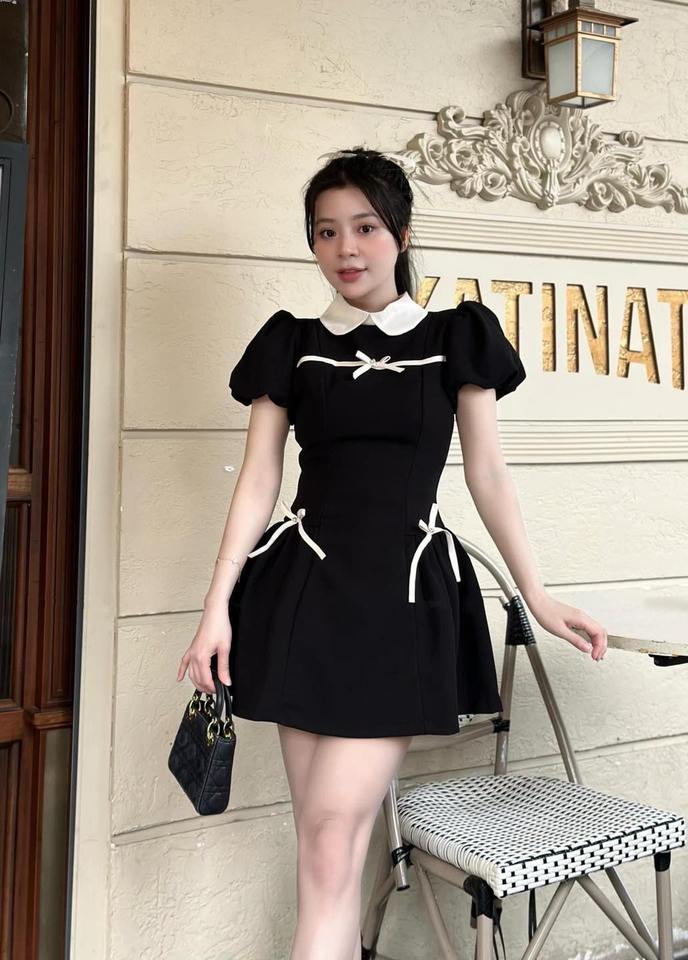 เดรสผ้าฝ้ายผู้หญิงทรงเอไลน์สั้น คอปกปีเตอร์แพน แขนพอง ทรงเข้ารูป สไตล์ลำลอง เอวธรรมชาติ น่ารักหวานๆ สไตล์เวียดนาม