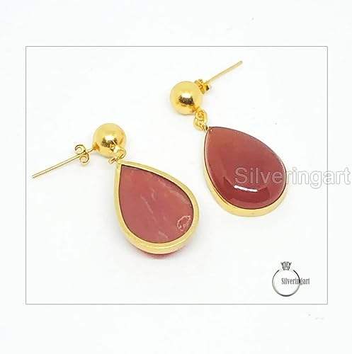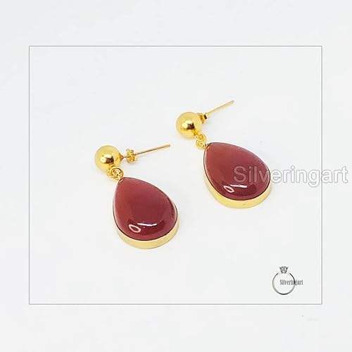 ต่างหูแบบห้อยสำหรับผู้หญิง ทำจากพลอยออนิกซ์สีแดงธรรมชาติ ของแท้ ใช้เป็นของขวัญวันเกิดหรือวันครบรอบ งานแฮนด์เมด เครื่องประดับเงินแท้ 925