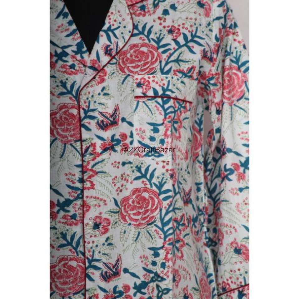 เสื้อเชิ้ตผู้หญิงทรงเข้ารูป แขนสามส่วน คอวี ลายดอกพิมพ์บล็อก ผ้าฝ้าย 100% เป็นมิตรกับสิ่งแวดล้อม เหมาะสำหรับงานกลางคืน/งานทางการ