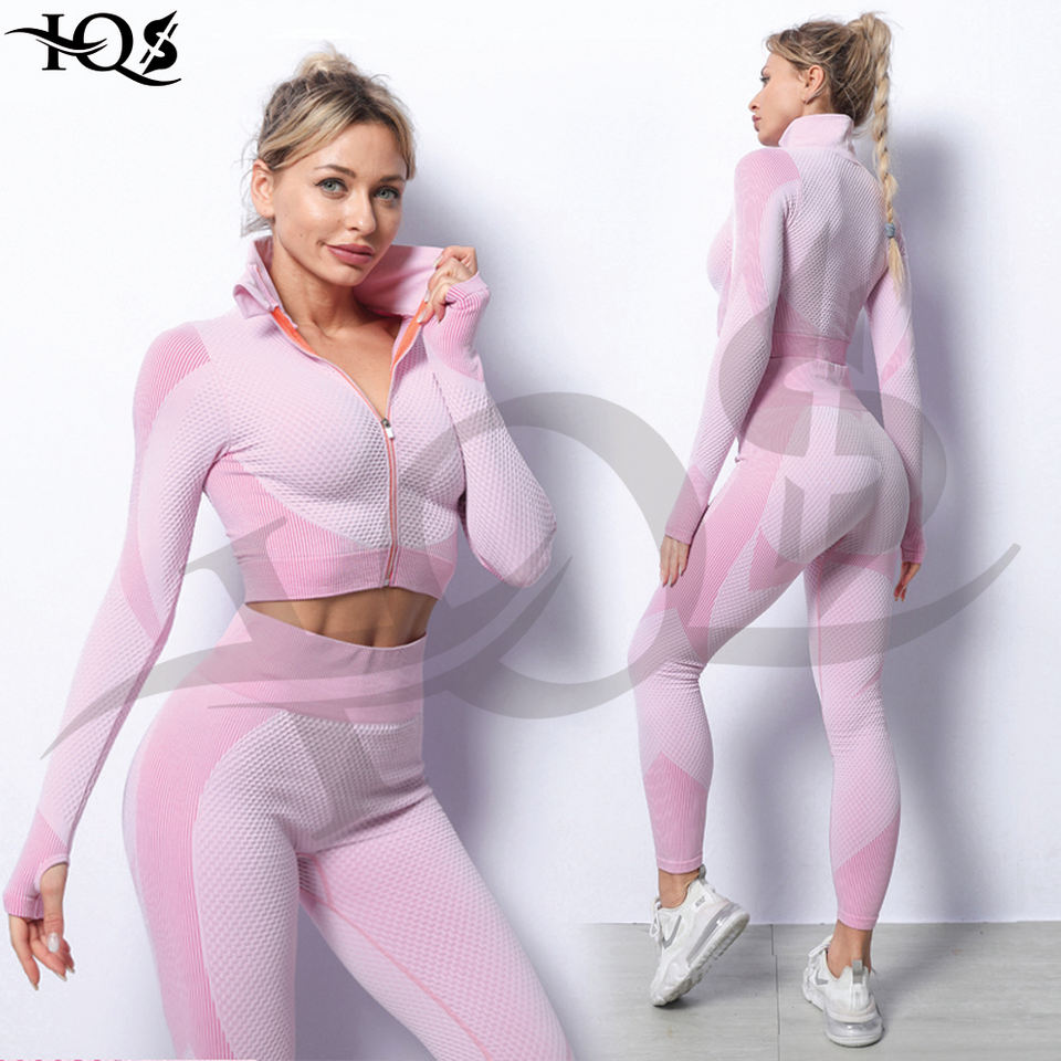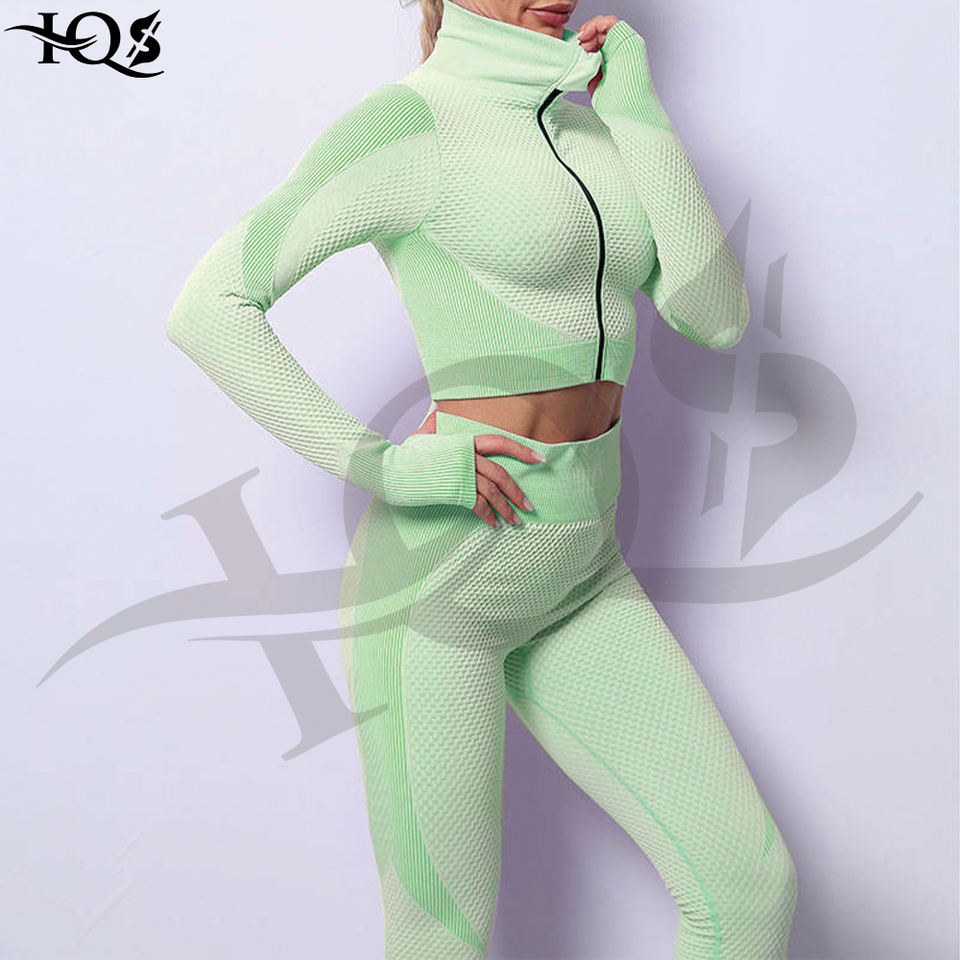 ชุดเสื้อผ้าโยคะ3ชิ้นผ้าระบายอากาศได้ดี220กรัมสำหรับผู้หญิงเป็นมิตรกับสิ่งแวดล้อมผ้าพิมพ์ลายโลโก้ด้านหน้าขายส่ง