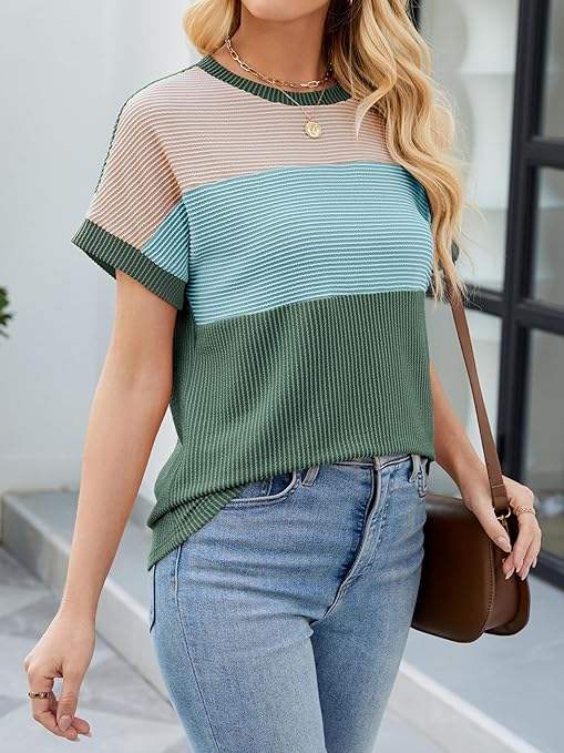 เสื้อคอกลมแขนสั้นเป็นมิตรต่อสิ่งแวดล้อมของผู้หญิงระบายอากาศได้ดีเสื้อยืดทรงหลวมลำลองฤดูใบไม้ผลิฤดูร้อน