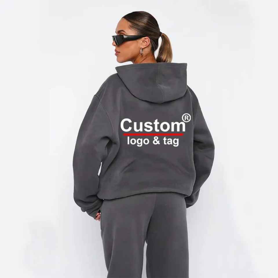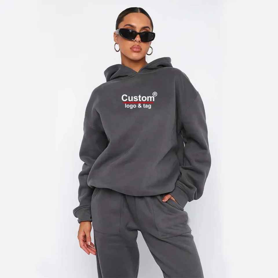 ชุดเซ็ตเสื้อฮู้ดและกางเกงวอร์มผ้าฟลีซ 2-in-1 สำหรับผู้หญิง ระบายอากาศ แห้งเร็ว เป็นมิตรกับสิ่งแวดล้อม สไตล์สตรีทแวร์ รับสกรีนโลโก้ แขนยาว อุ่นสบายสำหรับฤดูหนาว