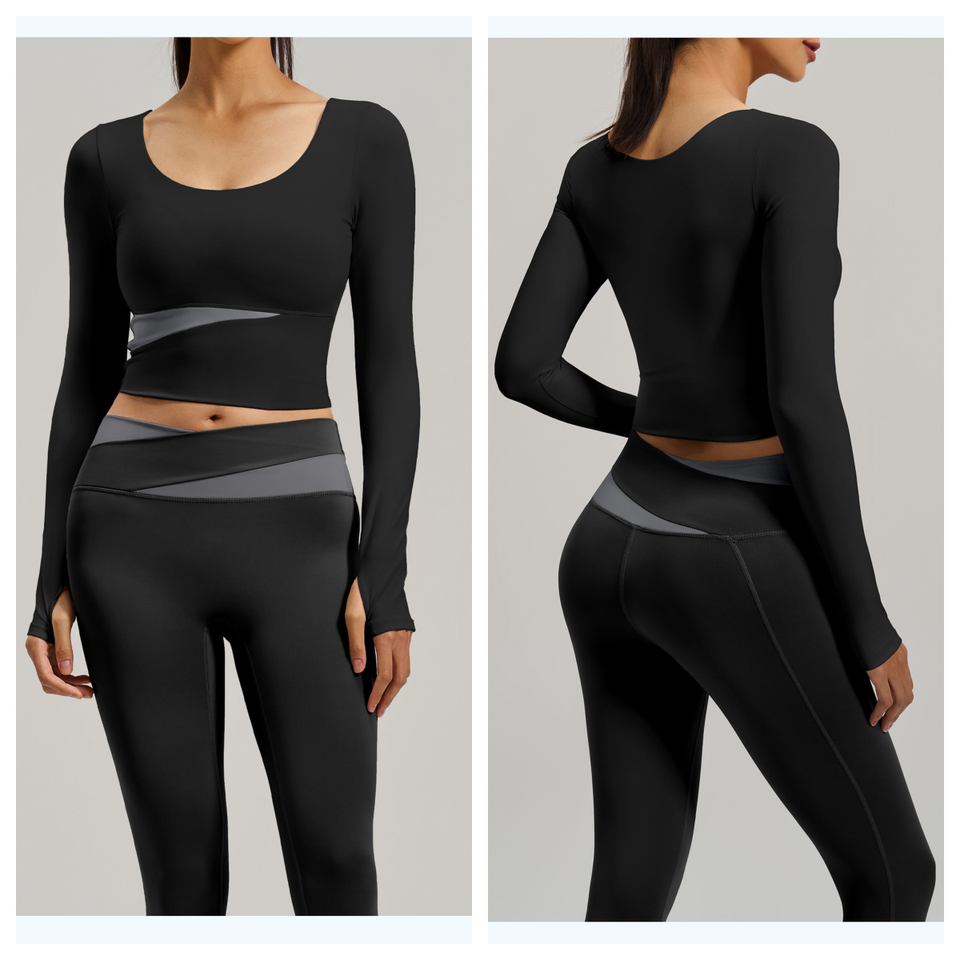 ชุดโยคะพิลาทิสสำหรับผู้หญิง ลายพิมพ์บล็อกสี ระบายอากาศ แห้งเร็ว เป็นมิตรกับสิ่งแวดล้อม ผลิตจากผ้าสแปนเด็กซ์/โพลีเอสเตอร์ ทรงเข้ารูป เหมาะสำหรับออกกำลังกายและวิ่ง