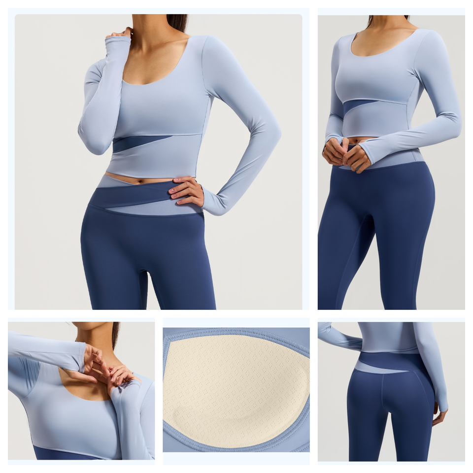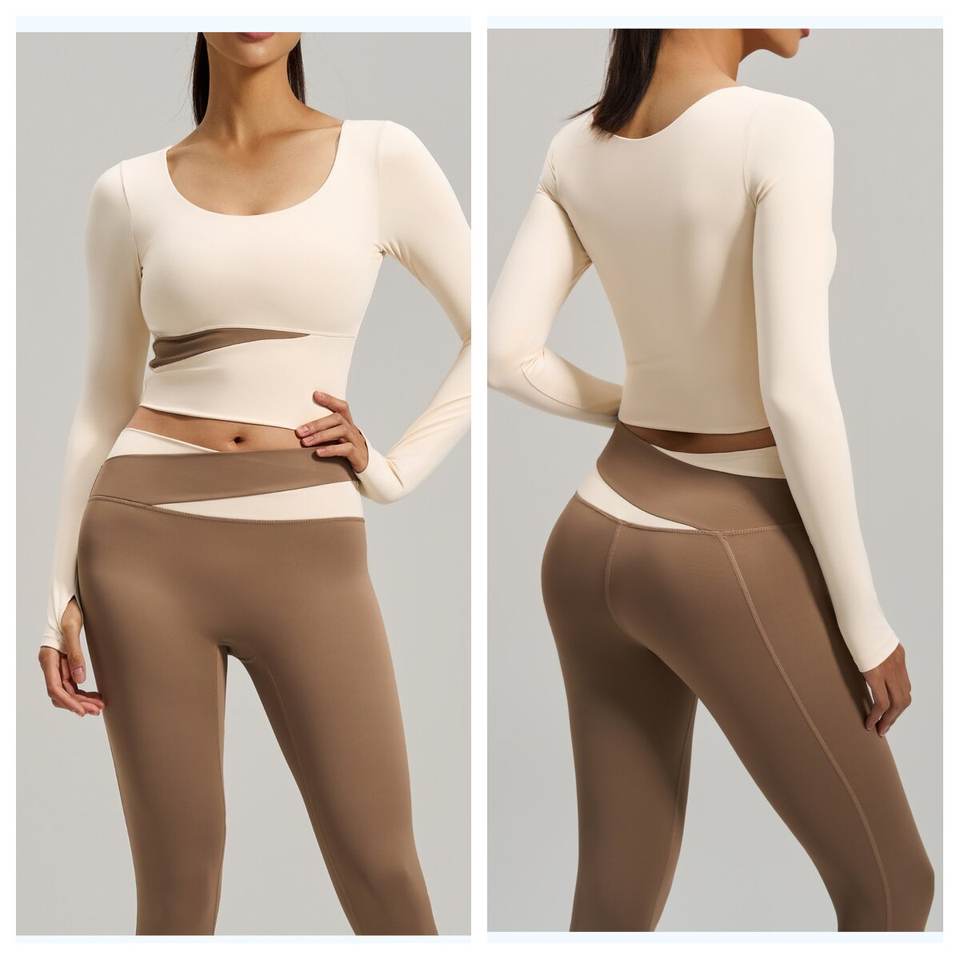 ชุดโยคะพิลาทิสสำหรับผู้หญิง ลายพิมพ์บล็อกสี ระบายอากาศ แห้งเร็ว เป็นมิตรกับสิ่งแวดล้อม ผลิตจากผ้าสแปนเด็กซ์/โพลีเอสเตอร์ ทรงเข้ารูป เหมาะสำหรับออกกำลังกายและวิ่ง