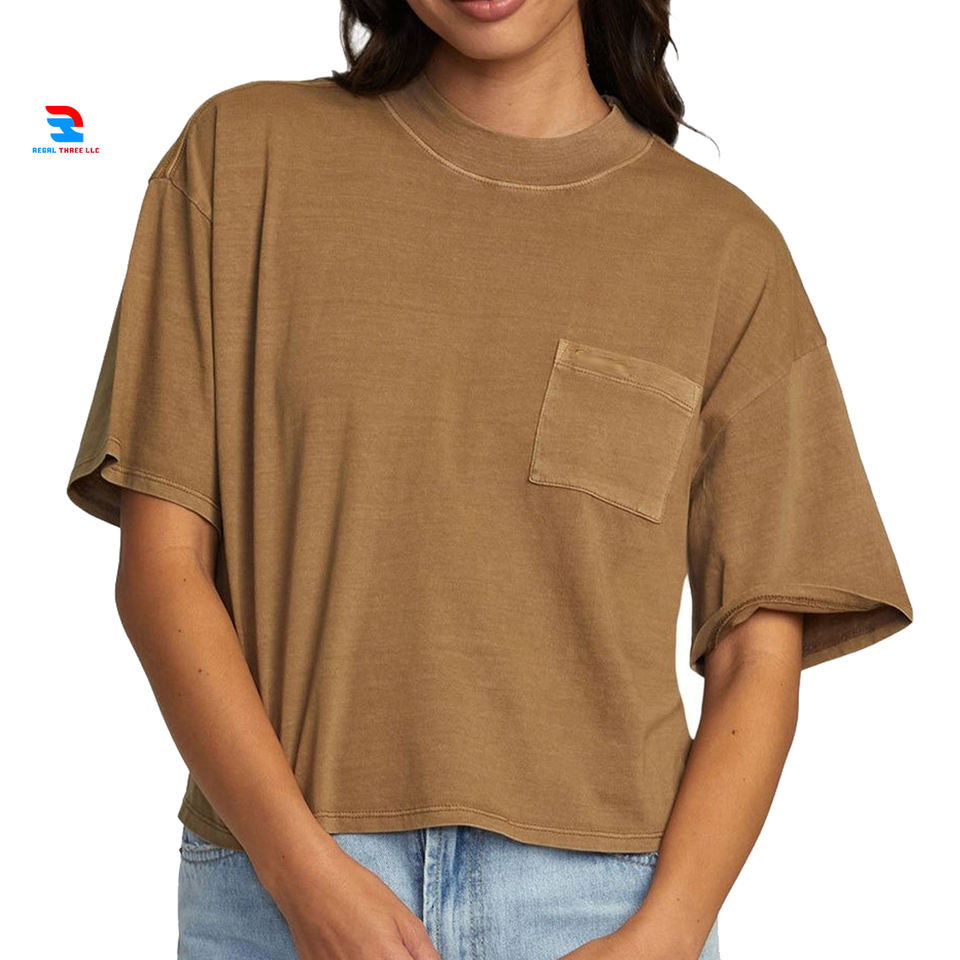 เสื้อยืดครอปทรงบ็อกซี่สำหรับผู้หญิง ผลิตจากผ้าฝ้าย/โพลีเอสเตอร์ 100% เป็นมิตรกับสิ่งแวดล้อม แห้งเร็ว เหมาะสำหรับเล่นกีฬา คอกลม ไหล่ตก