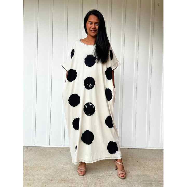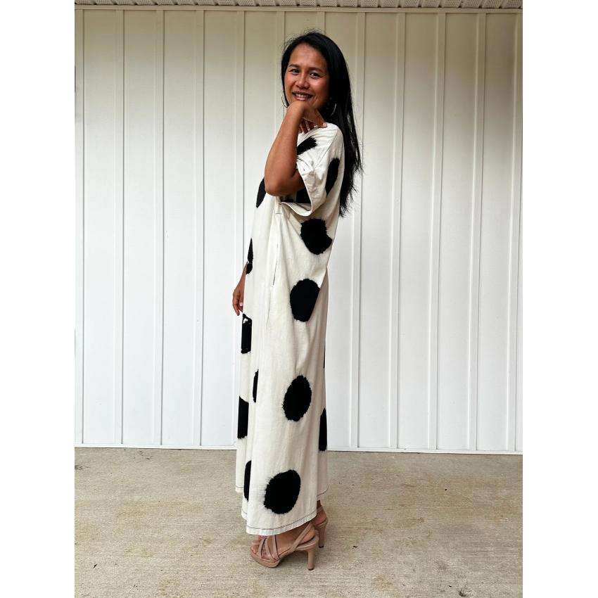 ชุดเดรสยาวลายจุดธรรมชาติแบบเป็นมิตรต่อสิ่งแวดล้อมสำหรับผู้หญิง ทรงหลวม สวมใส่สบาย