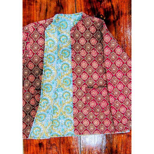 เสื้อโค้ทผู้หญิงแบบพิมพ์ลายรักษ์โลก ผ้าควิลท์สไตล์โบฮีเมียน แบบกลับด้านได้ ทำมือ ตกแต่งด้วยผ้าฝ้าย คอตั้ง สำหรับฤดูหนาว/ฤดูใบไม้ร่วง ทรงยาว แบบเสื้อคลุมเดี่ยว