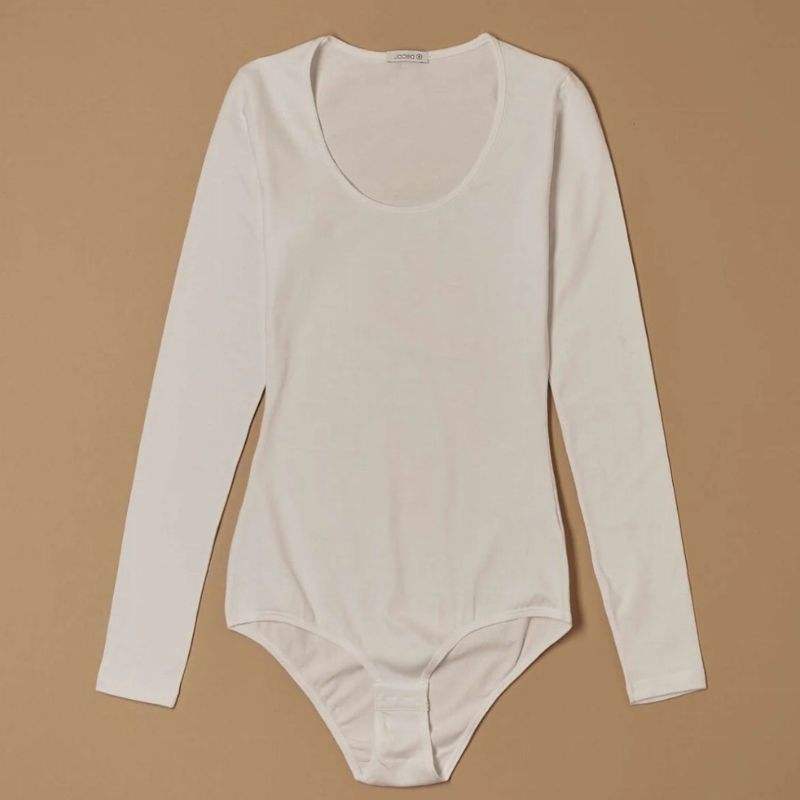 ชุดบอดี้สูทแขนยาวผ้าคอตตอนยืดหยุ่นของผู้หญิงเสื้อคอเสื้อแบบตะขอปิดนิ่มและใส่สบาย