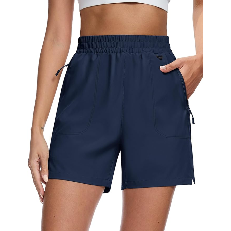 กางเกงขาสั้นเอวยางยืดสำหรับผู้หญิง, กางเกงขาสั้นผ้าฝ้ายออร์แกนิกนุ่มมีหลายกระเป๋า