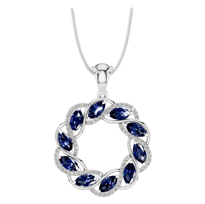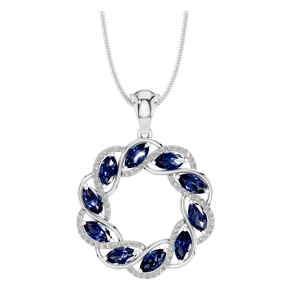 Style:Twisted Circle Pendant with Marquise Sapphire and Natural Diamonds