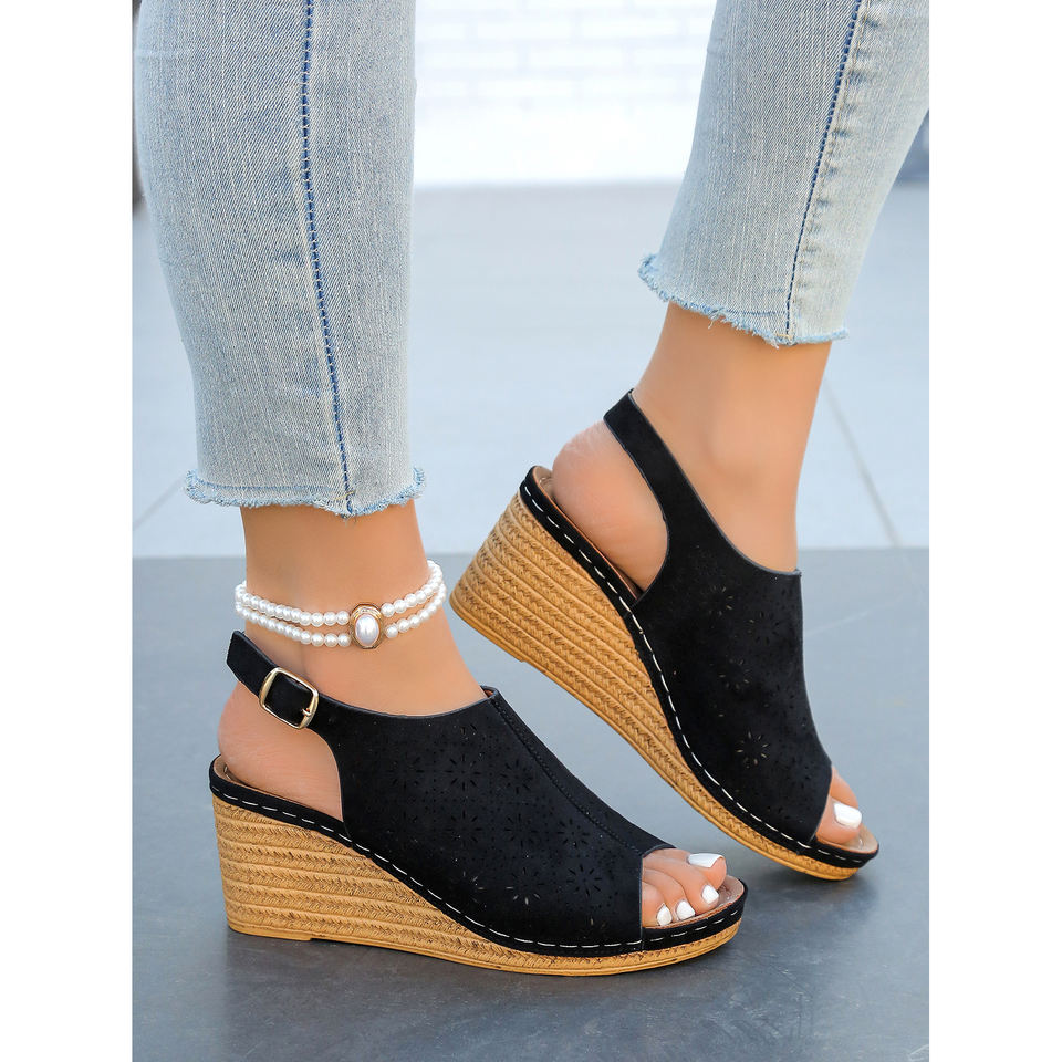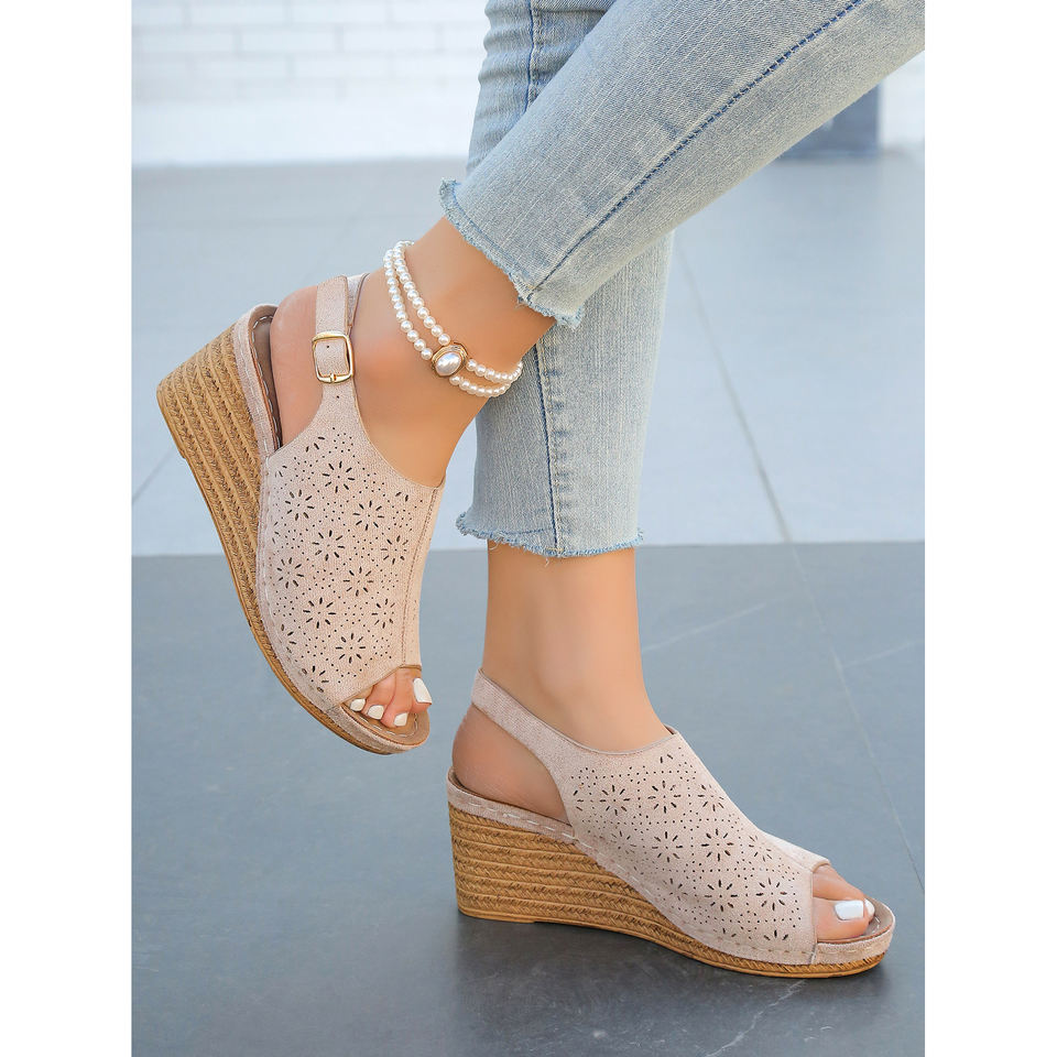 รองเท้าแตะส้นเตารีดแบบโบฮีเมียนสำหรับผู้หญิง ดีไซน์หรูหรา พร้อมสายรัดแบบหัวเข็มขัด ระบายอากาศได้ดี และทันสมัย