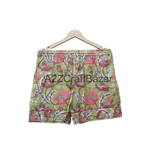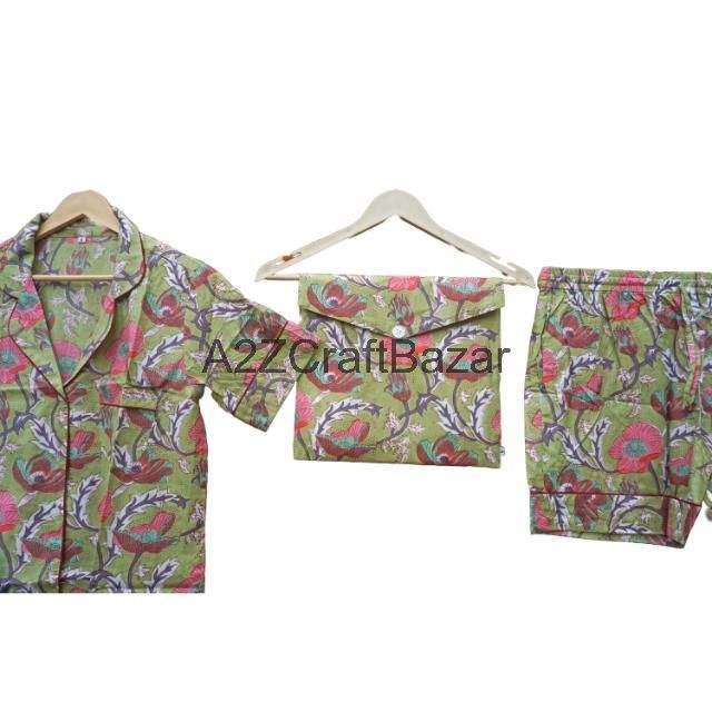 ชุดนอน3ชิ้นลายดอกไม้สำหรับผู้หญิงชุดนอนเอวยางยืดแขนสั้นแบบอินเดียสำหรับฤดูร้อน