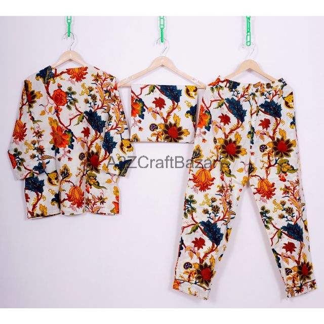 ชุดชุดนอน3ชิ้นลายดอกไม้หรูหราของผู้หญิงชุดฤดูหนาวเอวยางยืดคอวีแขนยาวระบายอากาศ