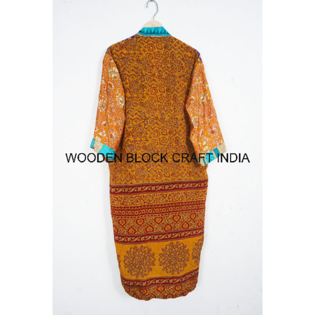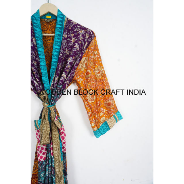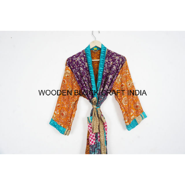 ชุดกิโมโนผ้าไหมลายดอกไม้สำหรับผู้หญิง, ชุดคลุมคลุมยาวผ้าซาตินสไตล์อินเดียงานทำมือสำหรับใส่ในฤดูร้อนชุดนอนชุดคลุมยาวถึงเข่า