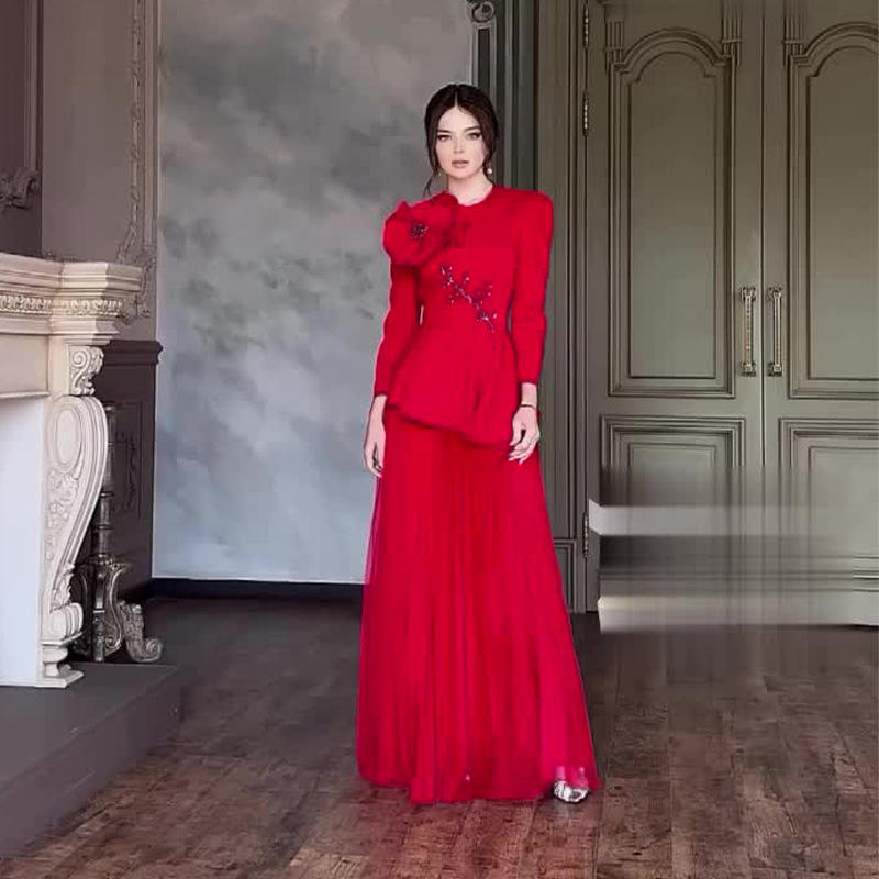 ชุดเดรสยาวหรูหราของผู้หญิงชุดเดรสยาวสไตล์ศาลวินเทจสไตล์ฝรั่งเศสชุดคอลเล็คชั่นใหม่ผ้าโพลีเอสเตอร์
