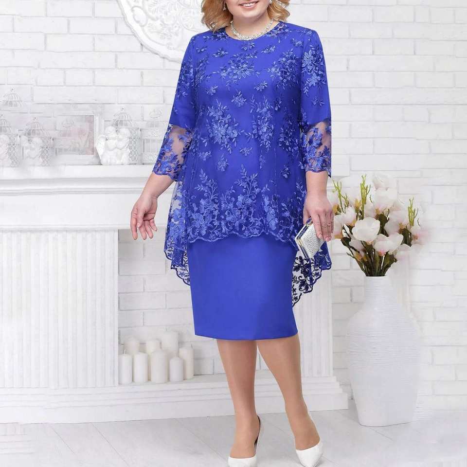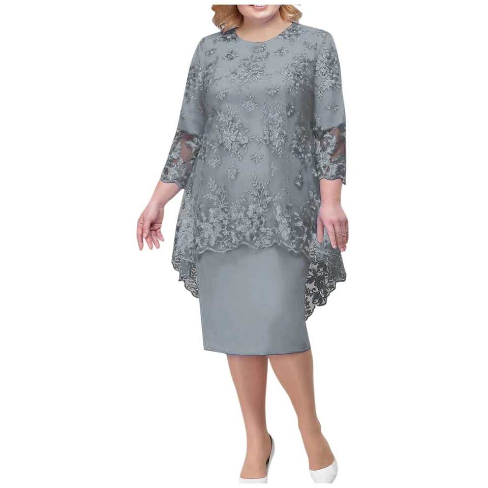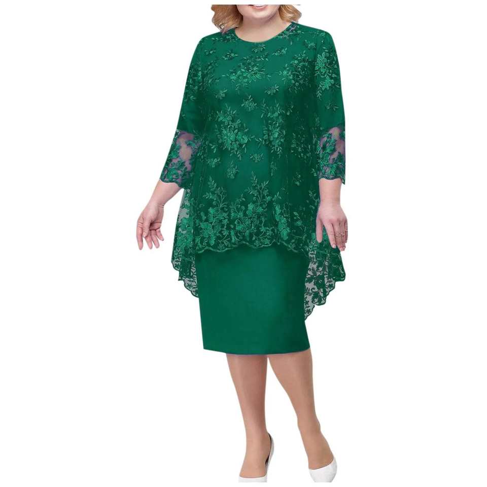 Women's Elegant Medium Long Length Dress Casual Fashion Lace Embroidery Two Piece Set Ropa De Mujer Vestidos Para Mujer